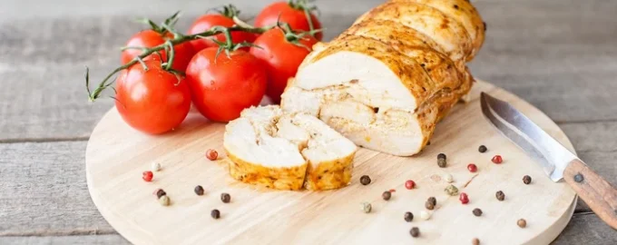 - Esilämmitä uuni 250 asteeseen ja lähetä uunivuokaa, jossa on kanafileitä, 20 minuutiksi, sammuta uuni, älä avaa luukkua ja jätä liha uuniin 4-6 tunniksi. Ota liha pois uunista ja säilytä jääkaapissa.